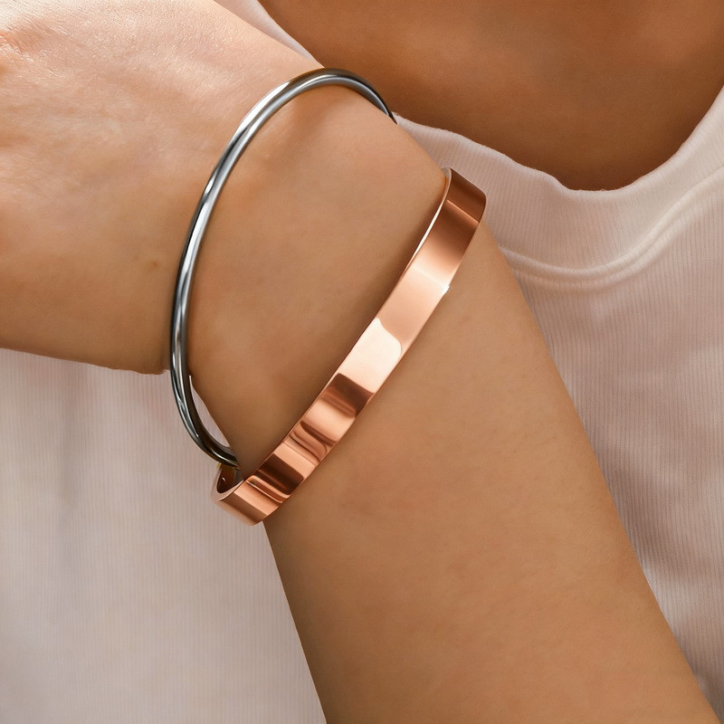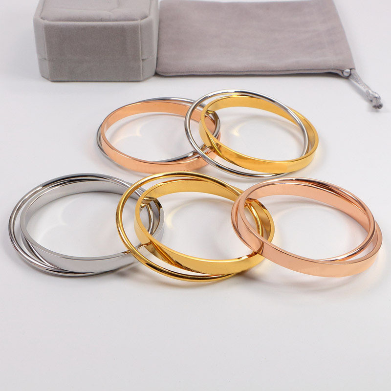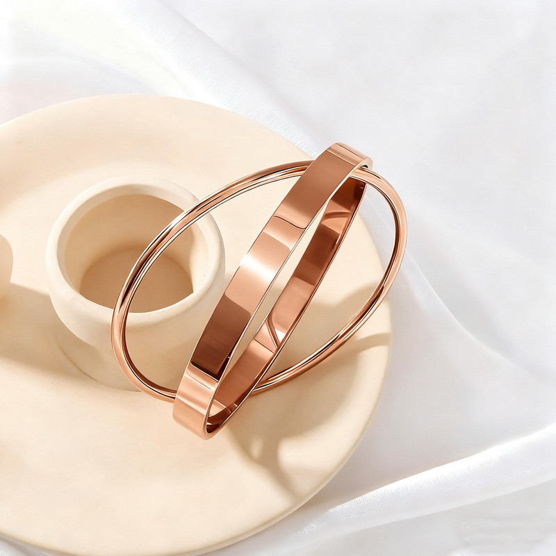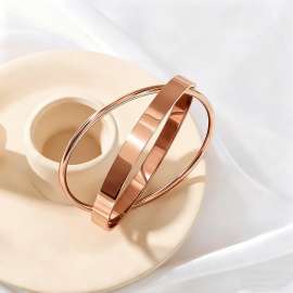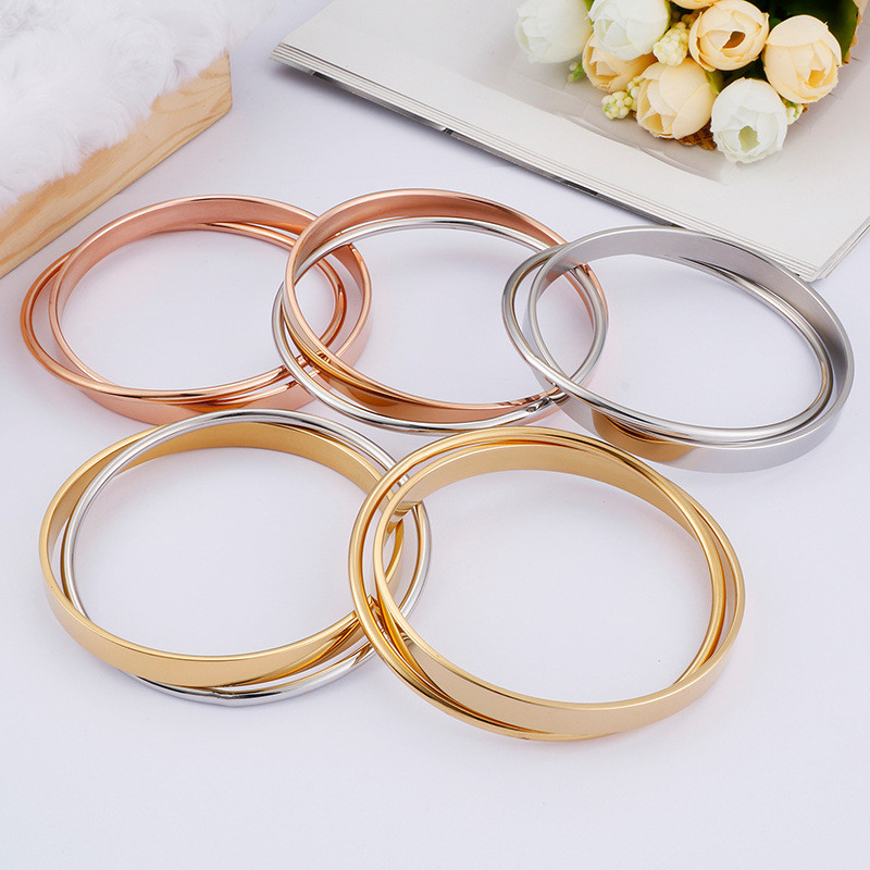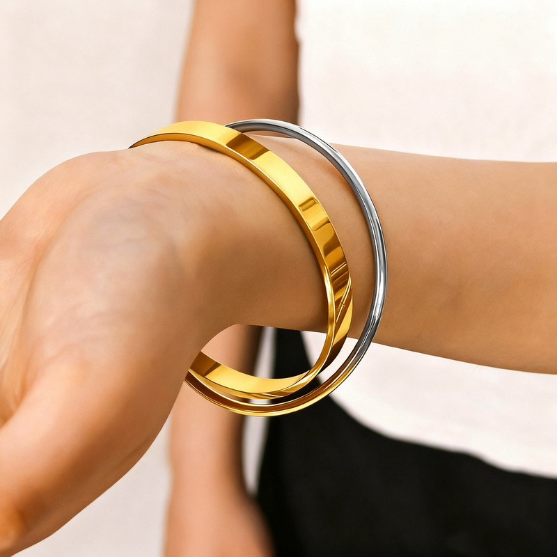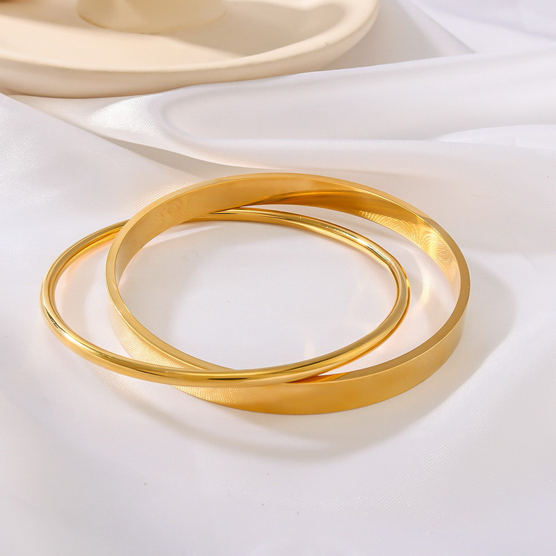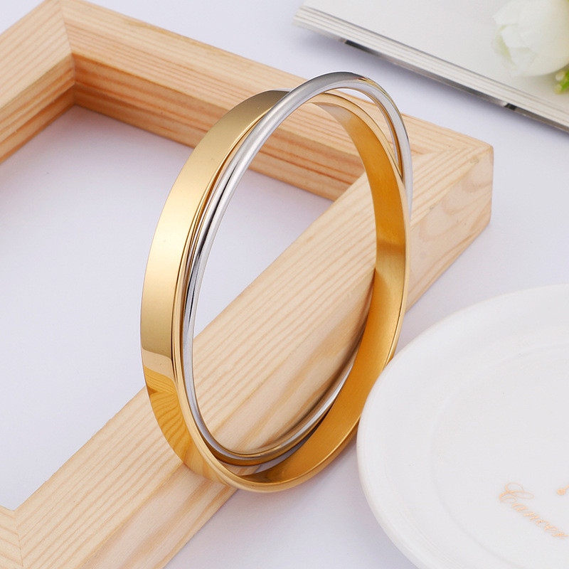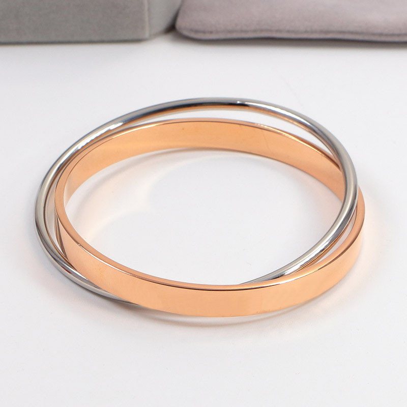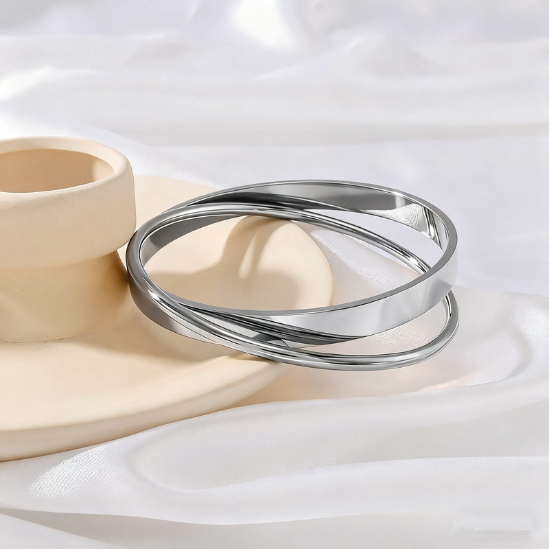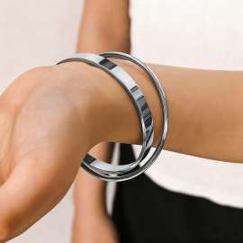 Stainless Steel Interlocking Double Ring Smooth Surface Bangle