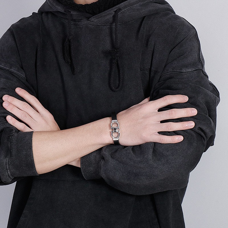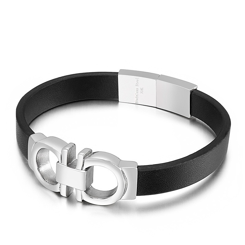 Hip hop domineering men's titanium minimalist leather fashion bracelet