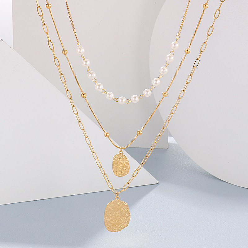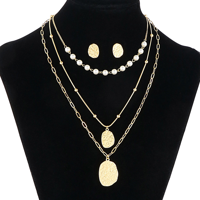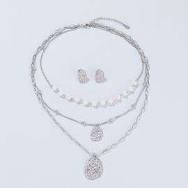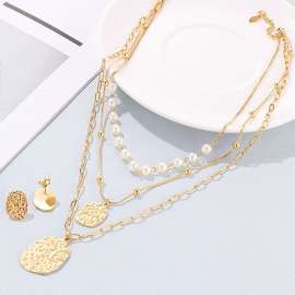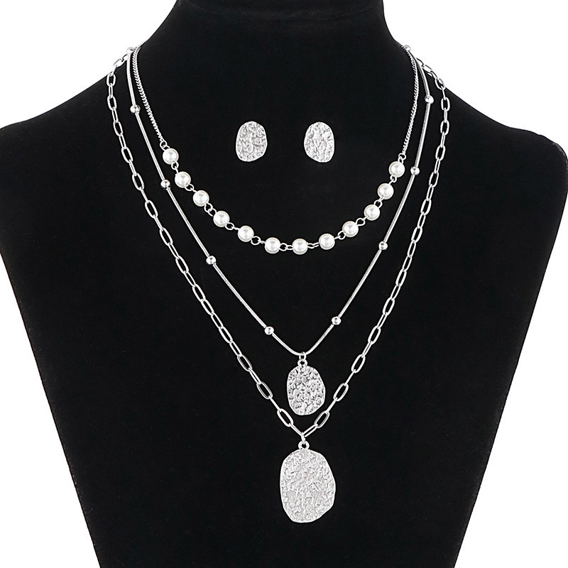 Exaggerated fashion multi-layered irregular hammered pattern pearl women's suit