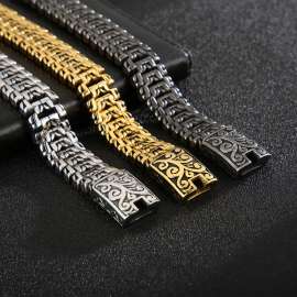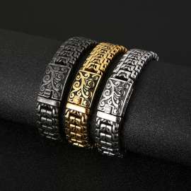 Home >Bracelets >Mighty Tree of Life Pattern Men's Stainless Steel Buckle Bracelet Gold-plating Bracelet