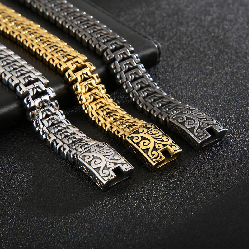 Mighty Tree of Life Pattern Men's Stainless Steel Buckle Bracelet Gold-plating Bracelet
