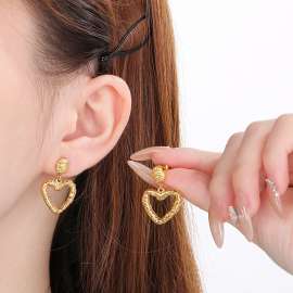 Fashionable Ins style titanium steel large heart hollow pendant necklace earrings two-piece set