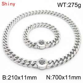 High Quality Stainless Steel 210×11mm Bracelet 550×11mm Necklace for Men Silver Color Curb Cuban Link Chain Skull Clasp Hip Hop Jewelry Sets