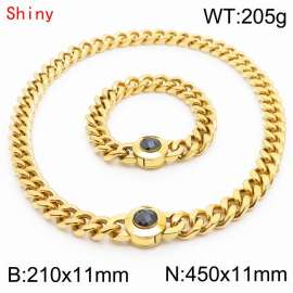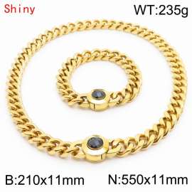 Personalized and trendy titanium steel polished Cuban chain gold bracelet necklace set, paired with white crystal snap closure