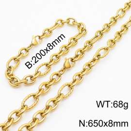 8*200/650mm Japanese and Korean wind machine weaving boiled Gold color stainless steel men Bracelet necklace set