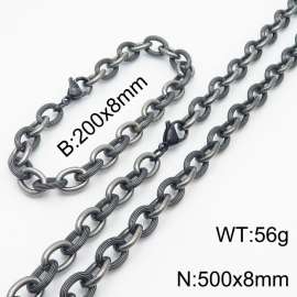 8mm boiled color embossed steel color men's Korean stainless steel bracelet necklace set
