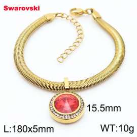Stainless steel 180X5mm snake chain with swarovski big stone circle pendant fashional gold bracelet