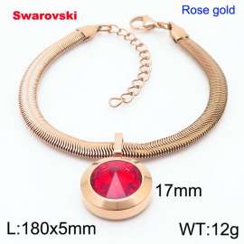 Stainless steel 180X5mm snake chain with swarovski circle pendant fashional rose gold bracelet