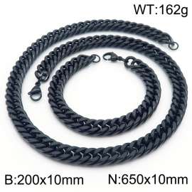 10mm 650mm Stainless Steel Sets Cuban Chain Bracelet Necklace Black Color
