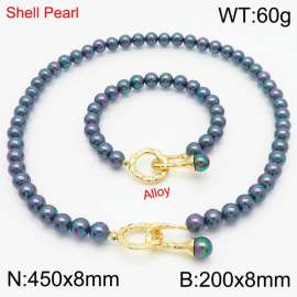 Fashionable French note buckle shell pearl women's bracelet necklace two-piece set