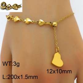 Splicing Heart Chain Heart shaped Pendant with Adjustable Gold Stainless Steel Bracelet