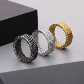 8mm Silver Color Stainless Steel 304 Ring Men New In Trendy diamond pattern