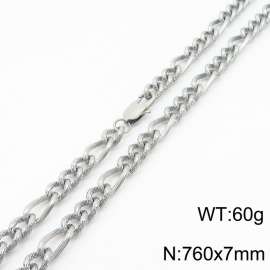 7mm60cm fashionable stainless steel 3:1 patterned side chain steel color necklace