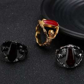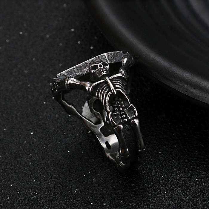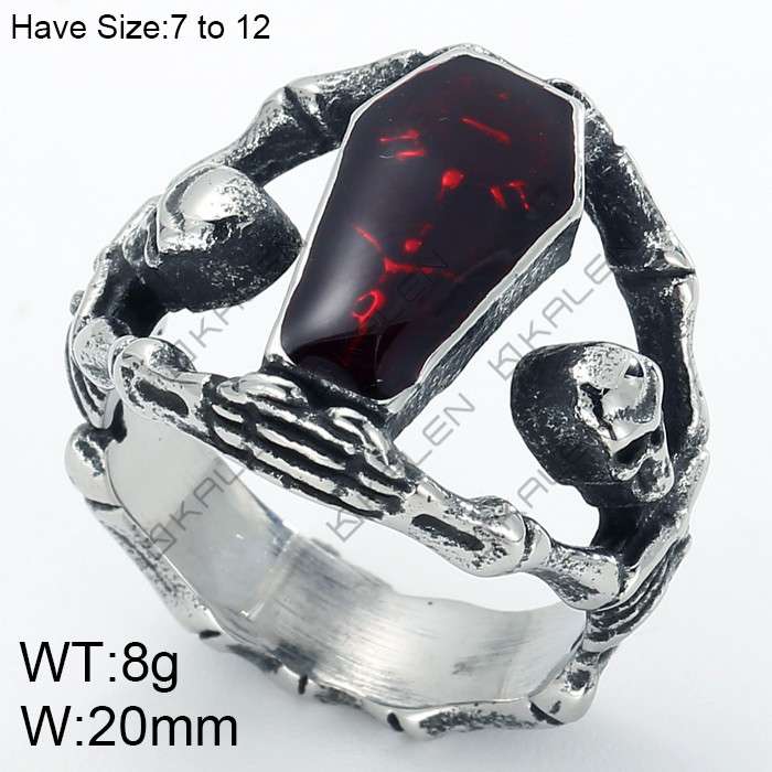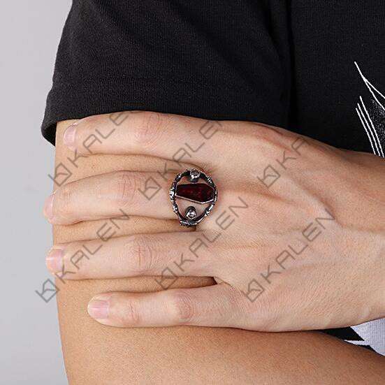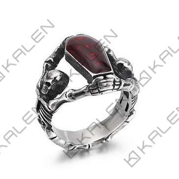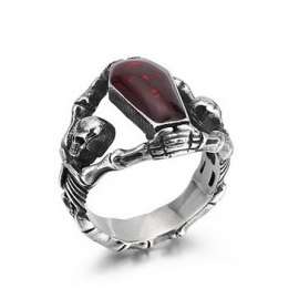 Oxidized Halloween Resin Coffin Vampire Skull Ring